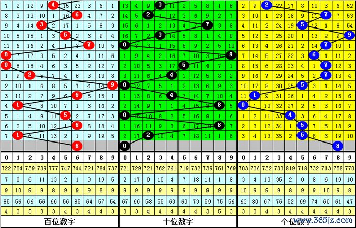 百位上期开出号码1,为奇数,偶数号最近出现次数较少,上期轮空之后,本期防护偶数号码回补,包涵号码6。